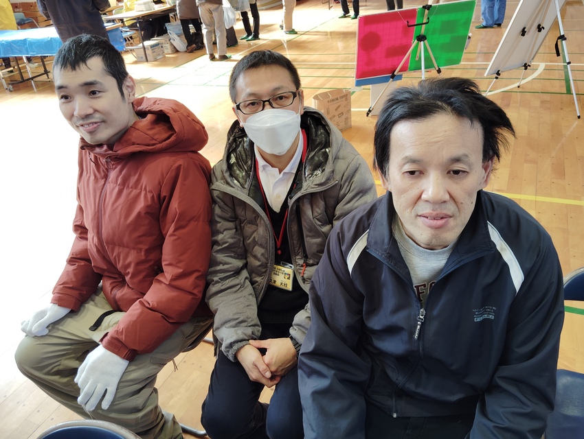 写真左からB様、副園長、リーダーのA様です。曇天の寒い冬空の下、皆様お疲れ様でした。そして受賞おめでとうございました。
