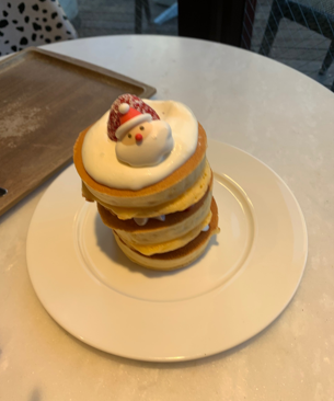 帰路の途中でサンタクロースのホットケーキを召し上がる方も!