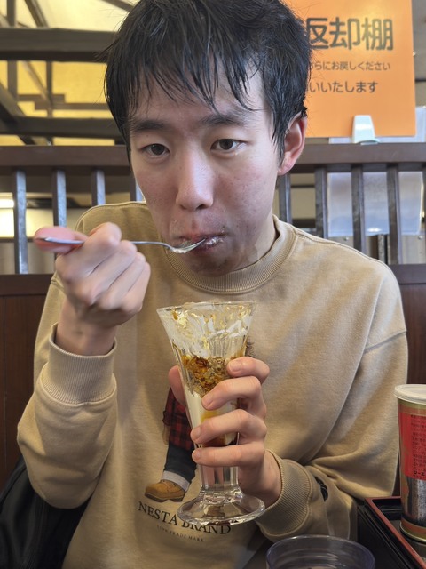 お風呂で心地よい疲労感のある身体にパフェの甘味が染み入る格別なひと時でした。