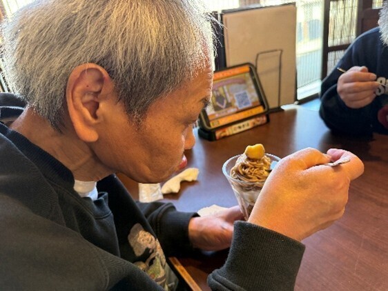 湯上がり後は、極楽湯内のレストランにて皆でパフェを食べました。